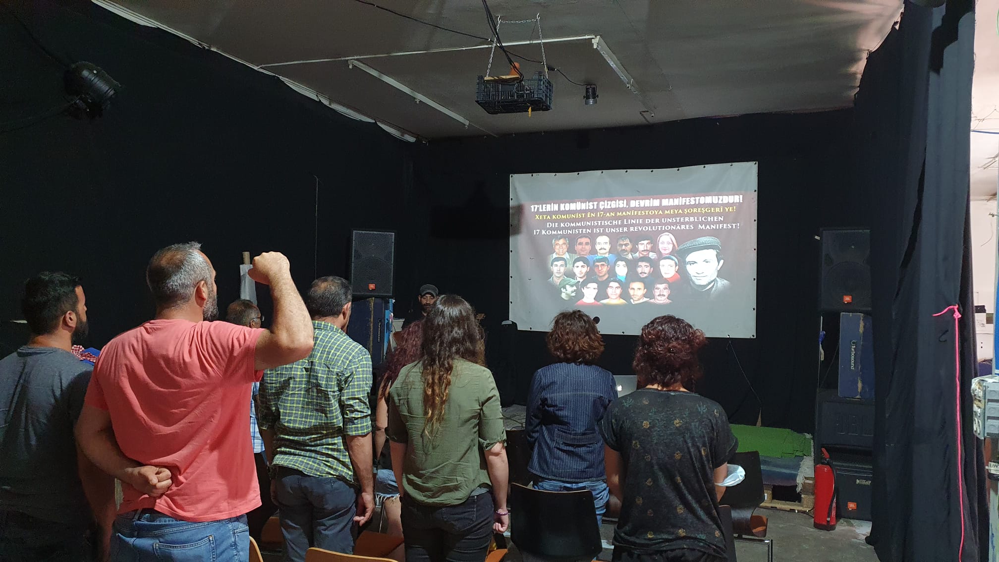 17’ler şahsında devrim, demokrasi, sosyalizm ve komünizm uğrunda ölümsüzlüğe uğurladıklarımız için saygı duruşuyla başlayan etkinlik sinevizyon gösterimi, devrimci ezgi ve marşlarla ile devam ettirildi.
