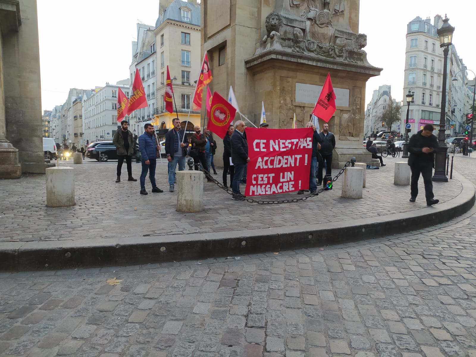 Paris: 19/10/2022: Paris’teki devrimci-demokrat kurumlar tarafından Bartın’daki işçi katliamı protesto edildi. Kapitalist sömürü düzeni tarafından, madenlerin birer işçi mezarlığına döndüğü Türkiye-Kuzey Kürdistan’daki son katliam Bartın Amasra’daki maden ocağında meydana geldi. Fransa’nın başkenti Paris’in 10. bölgesinde bulunan Strasbourg-Saint Denis’deki kemer önünde bir araya gelen devrimci-demokratik kurumlar ortak bir açıklamayla bu katliamı protesto ettiler.