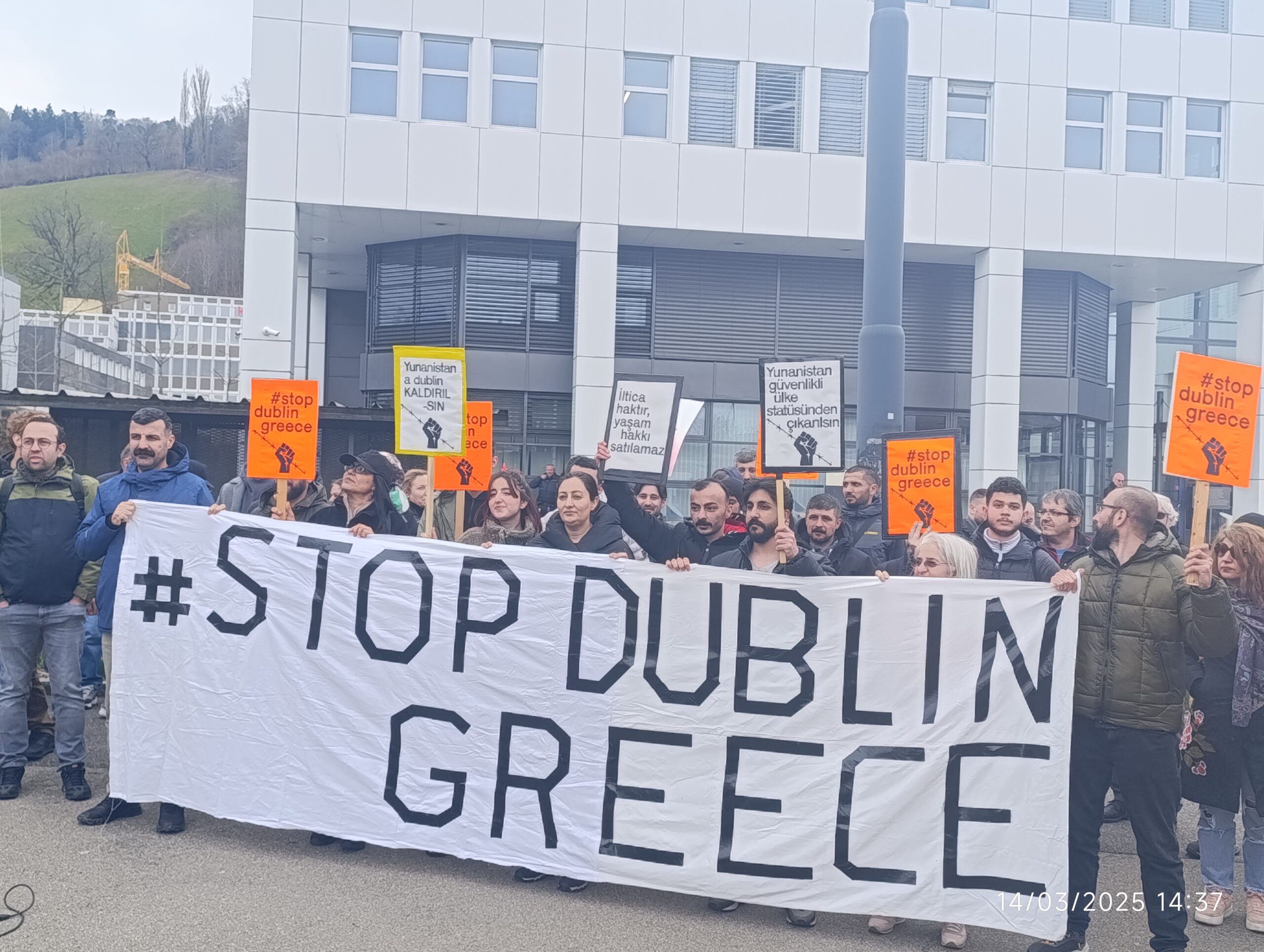 Bern, 14 Mart 2025 – Bugün saat 14:30’da Bern’de bir araya gelen mülteci hakları savunucuları ve destekçileri, Yunanistan’ın Dublin III Tüzüğü kapsamındaki uygulamalarını protesto etti. Eylemde, Yunanistan’a zorla geri göndermelerin durdurulması ve mültecilerin insan haklarının korunması çağrısı yapıldı.