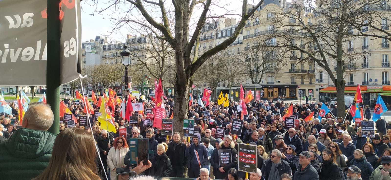 Place de la Nation’da bir araya gelen yüzlerce kişi, alevilerin ve diğer inançlardan insanların katledilmesine itiraz ettiler. Paris’te bulunan devrimci-demokratik örgütlerin çağrısıyla saat 13:00’te bir araya gelen yüzlerce kişi, cihatçı çetelerin barbarlığına ve Suriye’deki alevi ve diğer inançlardaki halkın katledilmesine karşı soğuk havaya rağmen alanları doldurdular. Paris’in mevcut potansiyeline istinaden katılımın düşüklüğü dikkat çekti.