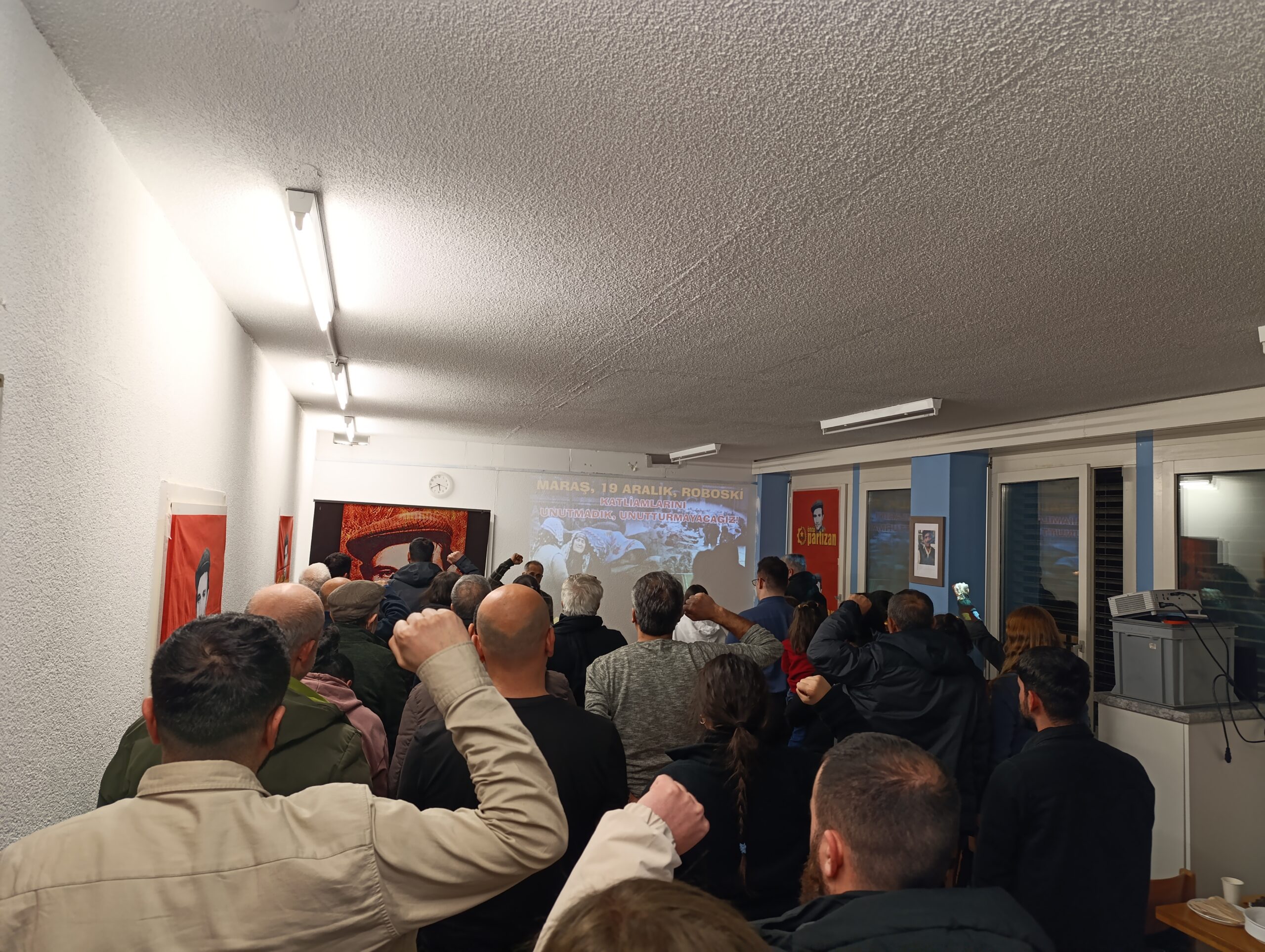 Zürih’te “Maraş, 19 Aralık, Roboski Katliamlarını Unutmadık, Unutturmayacağız!” şiarıyla bir anma etkinliği düzenlendi. Anma etkinliği, Öncü Partizan Zürih Komitesi’nden bir yoldaşın kısa açıklamasının ardından, devrim, komünizm ve demokrasi mücadelesinde ölümsüzleşenler anısına bir dakikalık saygı duruşuyla başladı ve 19 Aralık Katliamı’nı yaşayan tanıkların konuşmalarıyla devam etti.